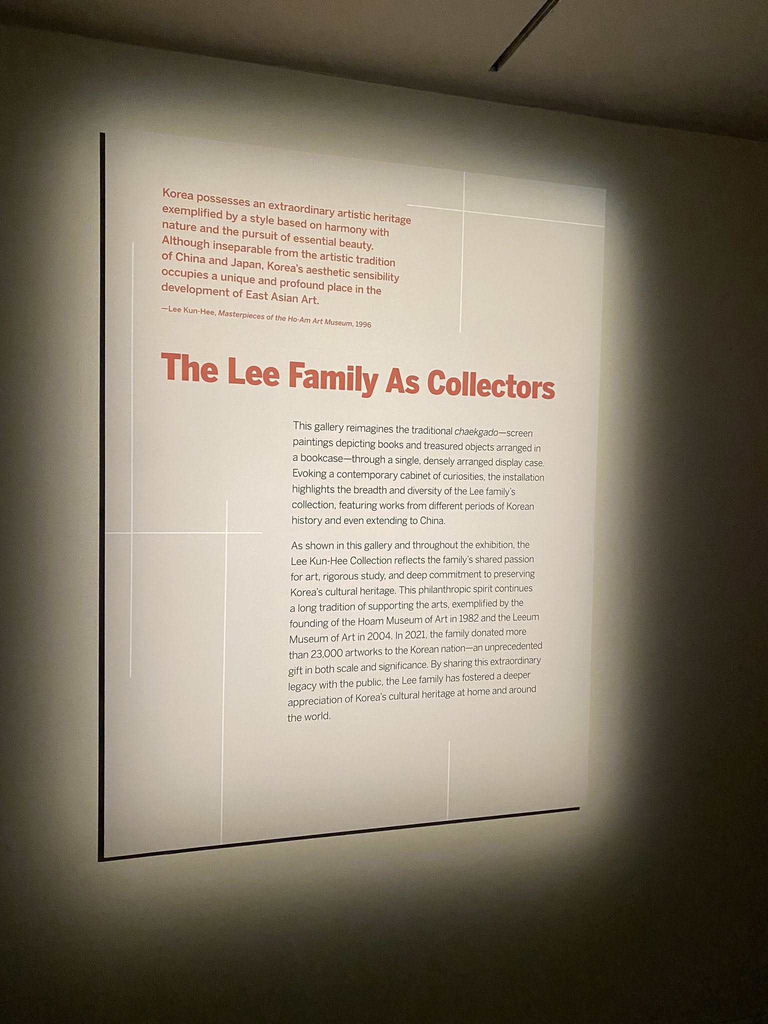 전시는 한국 고미술의 미학과 정신을 축으로 구성됐다. 불교미술, 도자, 회화 등 시대별 핵심 유물이 균형 있게 배치돼 한국 문화사의 흐름을 입체적으로 전달한다. 작품 설명은 영문 중심으로 제공되며, 제작 배경과 역사적 맥락을 간결하게 정리해 비전공 관람객의 이해를 돕는다.