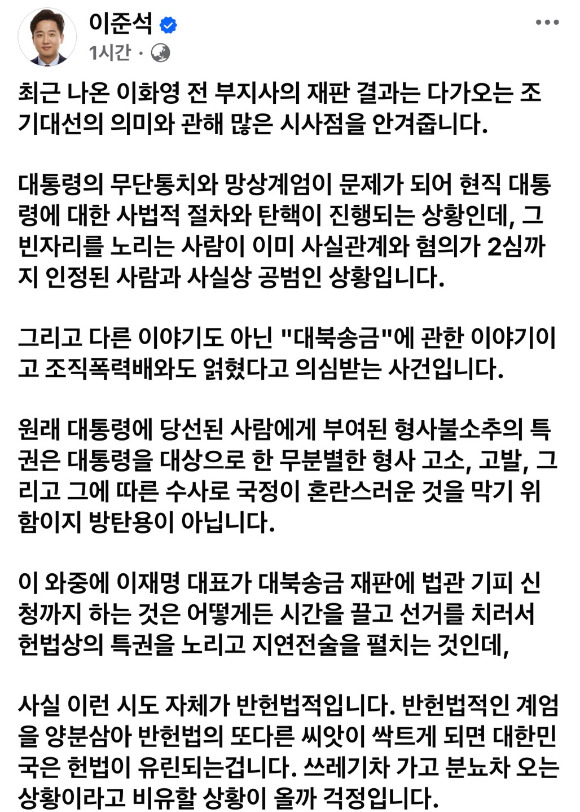 대북 송금에 공모한 혐의로 항소심에서 실형을 선고받은 이화영 전 경기도 평화부지사의 사건과 관련해 이준석 개혁신당 의원이 이재명 더불어민주당 대표를 강하게…