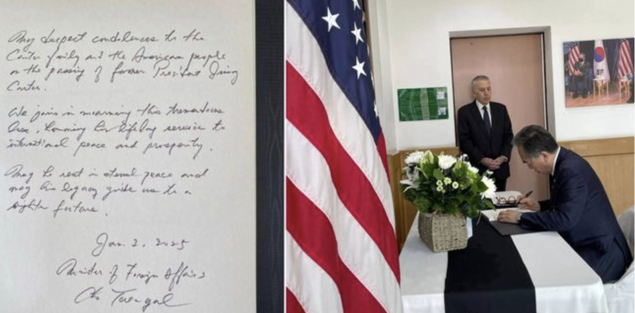 조태열 외교부 장관이 지난 2일 오후 서울 용산구 주한 미국대사관에 마련된 고(故) 지미 카터 전 미국 대통령의 빈소를 찾아 애도의…