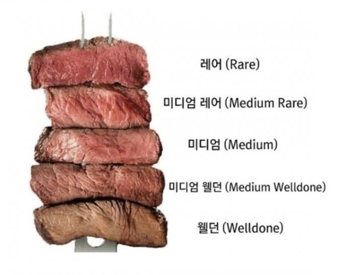 스테이크를 즐기는 방식은 사람마다 다르다. 고기의 굽기 정도에 따라 육즙과 식감이 달라지기 때문이다. 스테이크의 대표적인 굽기 정도는 총 다섯 가지로…