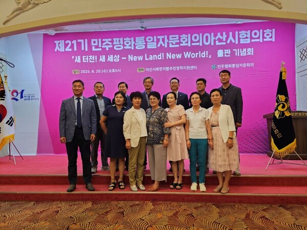 민주평화통일자문회의 아산시협의회(회장 윤태균)가 20일 온양관광호텔에서 ‘새 터전 새 세상-북한이탈주민들의 수기 공모 모음집’ 출판기념식을 열었다. 이번 행사에는 탈북민과 민주평통 자문위원, 지역…