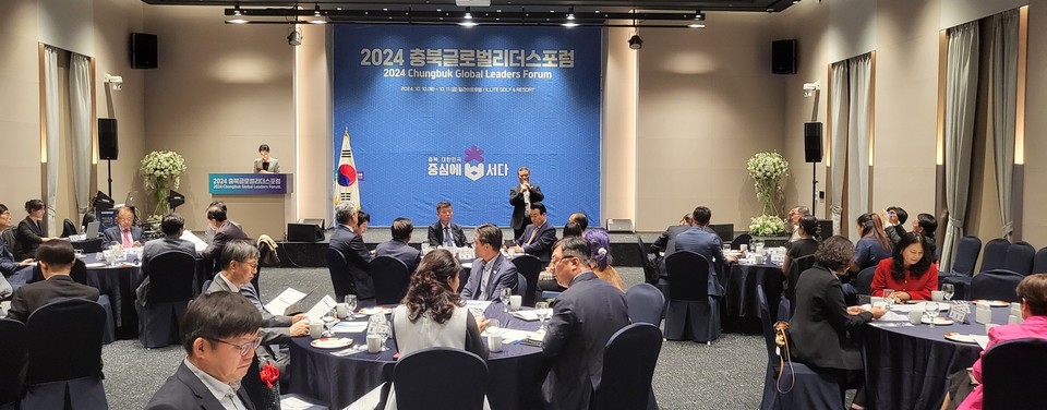충청북도는 10일 영동 일라이트호텔에서 ‘2024 충북글로벌리더스포럼’을 개최했다. 이번 포럼에는 충북도 명예도지사, 명예대사, 국제자문관 등 12개국에서 온 25명의 글로벌 리더들과 도내…