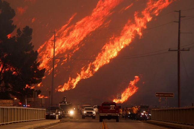 미국 캘리포니아주 로스앤젤레스(LA) 북쪽에서 새로운 산불이 발생하며 강풍과 건조한 날씨를 타고 급격히 확산되고 있다. 22일(현지시간) LA에서 약 80km 떨어진 캐스테이크…