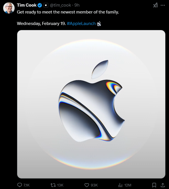 팀 쿡 애플 최고경영자(CEO)가 오는 19일 신제품 공개를 예고했다. 13일(현지시간) IT 전문 매체 폰아레나에 따르면, 팀 쿡 CEO는 이날 엑스(X)를…