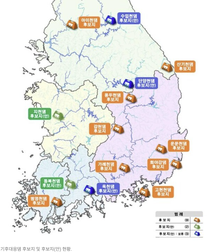 환경부가 기후변화로 인한 물 부족과 홍수 예방을 위해 전국 9곳을 기후대응댐 후보지로 확정했다. 환경부는 12일 정부서울청사에서 열린 국가수자원관리위원회 회의에서 ‘제1차…