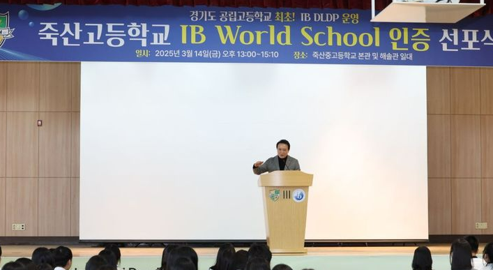 안성 죽산고등학교가 경기도 공립학교 중 최초로 ‘디플로마 프로그램(DP) 월드스쿨’ 인증을 받아 14일 선포식을 개최했다. 이날 행사에는 임태희 경기도교육감을 비롯해 도교육청…