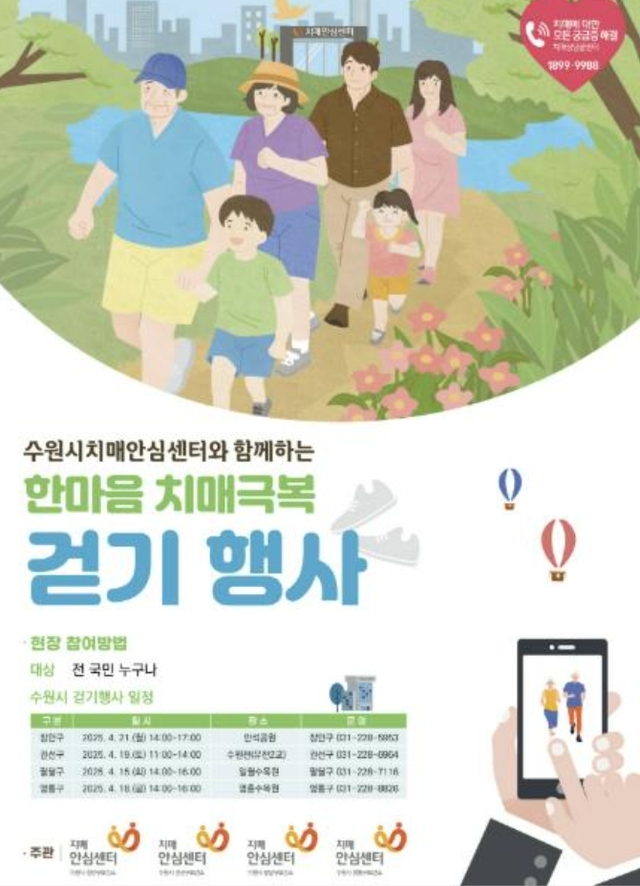 수원시보건소 치매안심센터가 4월 15일부터 21일까지 ‘2025 한마음 치매극복 걷기행사’를 개최한다. 이번 행사는 치매에 대한 사회적 공감대를 확산하고 걷기를 통한 치매…