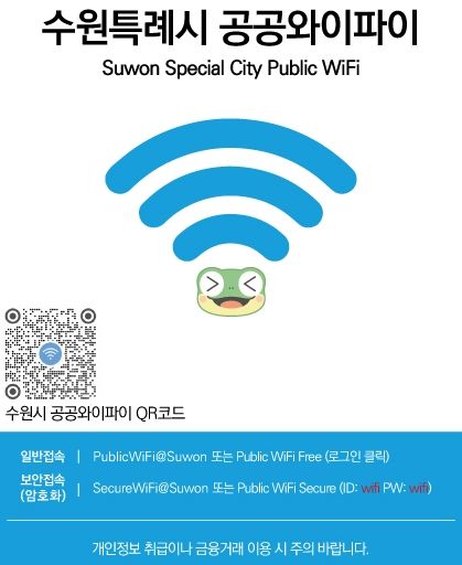 수원시가 시민들의 편의성을 높이기 위해 관내 모든 공공 와이파이망의 접속 아이디를 통일하고 데이터 암호화 보안 방식을 도입했다. 수원시는 14일 “시…