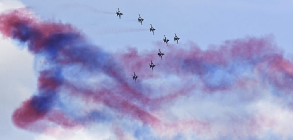 17일 경기 수원 공군기지 상공에서 공군 특수비행팀 블랙이글스가 펼친 화려한 에어쇼가 관람객들의 이목을 사로잡았다. 이날 열린 ‘스페이스 챌린지 2025 in…