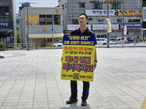 2022년 강릉에서 발생한 차량 급발진 의심 사고로 숨진 이도현(사망 당시 12세) 군의 유족이 1심 민사소송 패소 판결에 반발하며 거리 시위에…