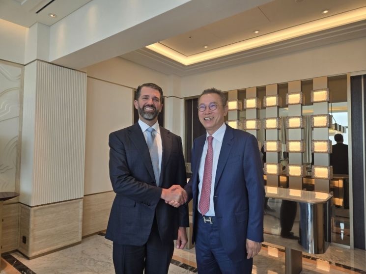 문주현 MDM그룹 회장이 방한 중인 도널드 트럼프 전 미국 대통령의 장남 트럼프 주니어와 만나 미국 부동산 투자 및 공동 개발…