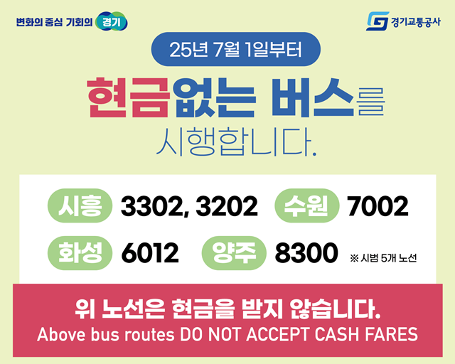 경기도가 오는 7월 1일부터 일부 광역버스 노선을 대상으로 현금 결제를 없애고 카드와 계좌이체로만 요금을 납부할 수 있도록 하는 ‘현금 없는…