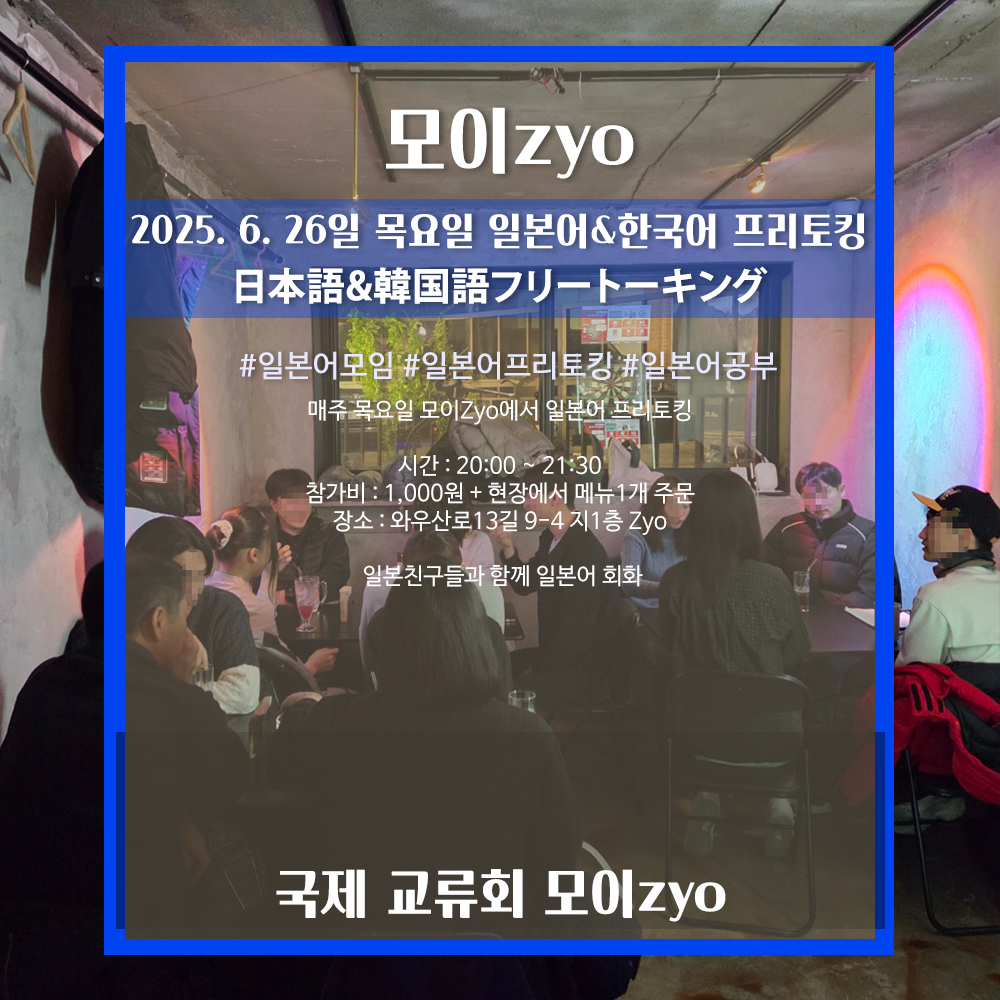서울에서 일본어와 한국어를 동시에 배울 수 있는 프리토킹 모임이 오는 6월 26일(목요일) 저녁 8시에 열린다. 이 모임은 매주 목요일에 진행되며,…