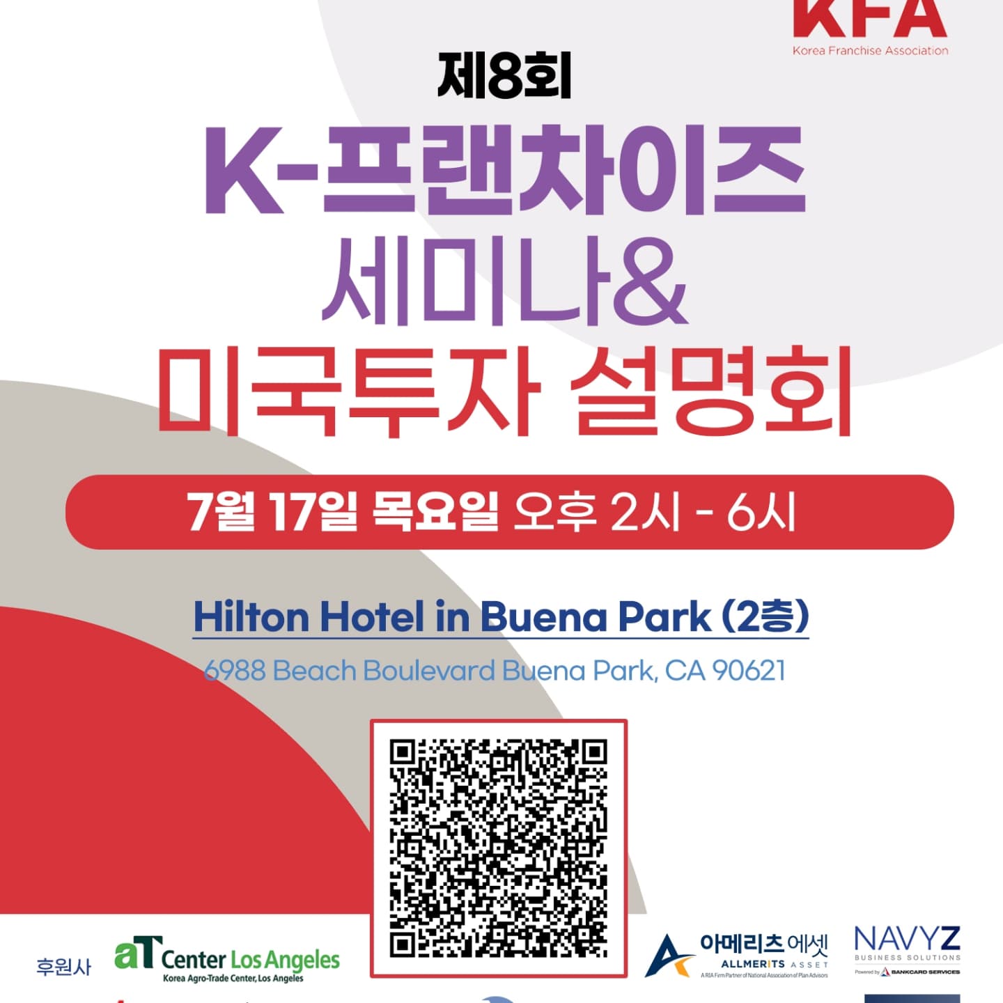 글로벌 한류 확산에 발맞춰 한국 프랜차이즈 기업들의 미국 진출을 돕기 위한 ‘제8회 K-프랜차이즈 미국 투자 설명회’가 개최된다. 한국 프랜차이즈 산업협회…