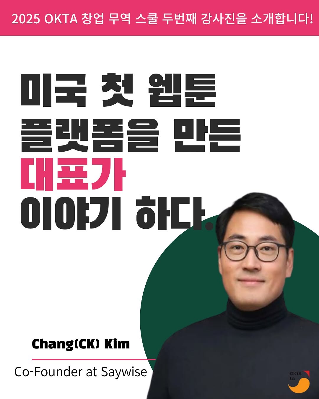 세계한인무역협회(OKTA) 로스앤젤레스 지회가 주최하는 ‘2025 옥타 창업무역스쿨’이 오는 8월 UCLA에서 열린다. 이번 행사에서는 웹툰 플랫폼 ‘Tapas Media’를 창업한 김창원 대표가…