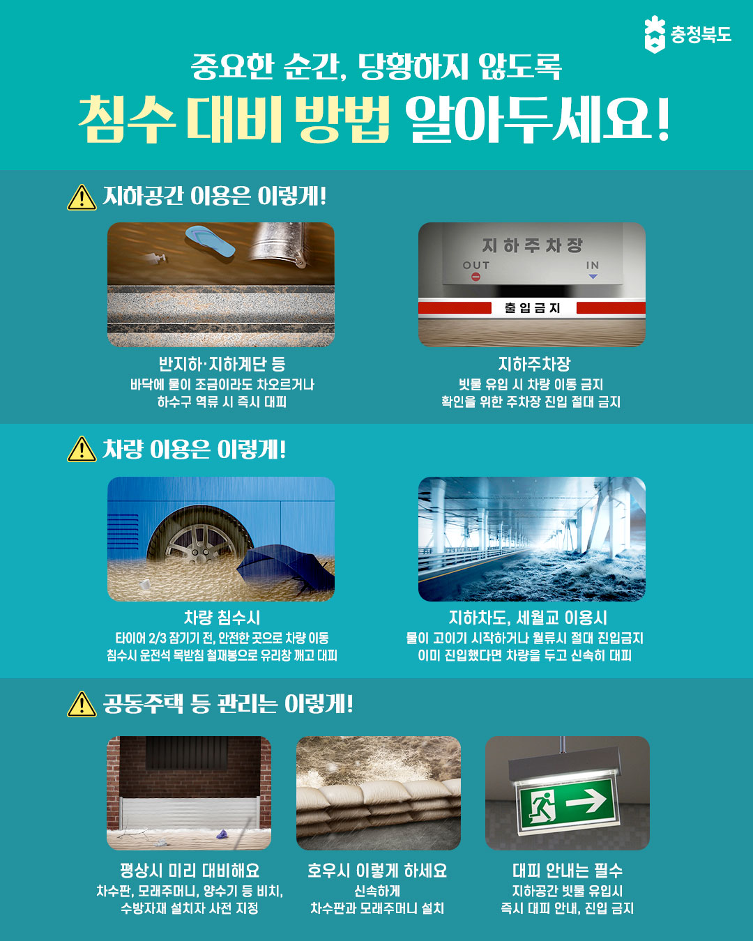 충청북도청은 7월 13일 집중호우와 태풍에 대비해 도민 안전을 위한 5대 행동 수칙을 발표했다. 충청북도는 이번 요령이 호우와 태풍으로 인한 인명…