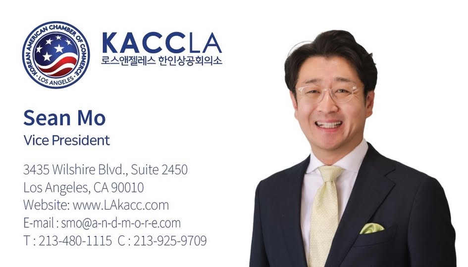 로스앤젤레스 한미상공회의소(KACCLA)가 Andmore Partners 대표 션 모를 신임 부회장으로 선임했다. 션 모는 공동 창업자로서 건축·인테리어 디자인, 마스터플래닝, 부동산 개발 프로젝트를…