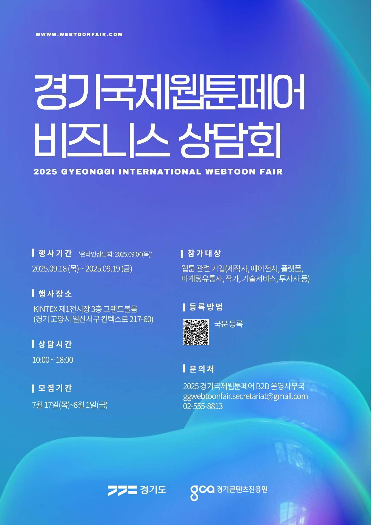 경기도와 경기콘텐츠진흥원이 주최하는 ‘제7회 경기국제웹툰페어’가 오는 9월 18일부터 19일까지 일산 킨텍스 제1전시장 3층 그랜드볼륨에서 열린다. 이번 행사에서는 웹툰을 중심으로 산업적·문화적…