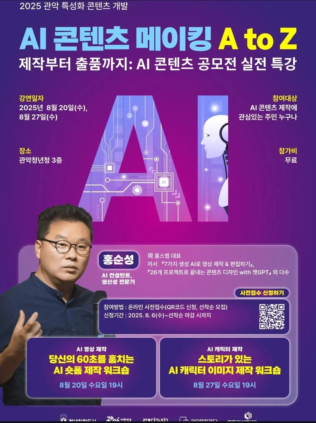 관악구가 지역 청년과 주민들을 대상으로 한 ‘AI 콘텐츠 메이킹 A to Z’ 특강을 마련했다. 이번 강연은 제작부터 공모전 출품까지 이어지는…