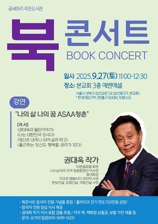 권대욱이 오는 9월 27일 오전 11시 성북구 본교회에서 북토크 ‘나의 삶, 나의 꿈 – ASAA 청춘’을 연다. 이번 행사는 책…