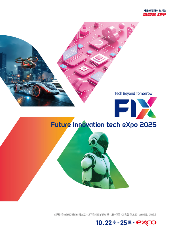 대구광역시는 오는 10월 22일부터 25일까지 나흘간 대구 엑스코(EXCO)에서 ‘2025 미래혁신기술박람회(Future Innovation Tech EXPO, FIX 2025)’를 연다. 슬로건은 ‘혁신기술이 바꿀 더…