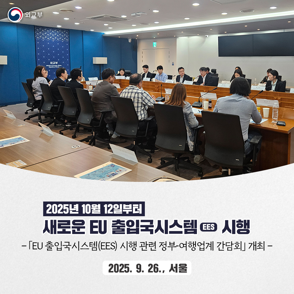 외교부가 9월 26일 윤주석 영사안전국장 주재로 유럽 지역 29개국에서 10월 12일부터 시행되는 EU 출입국시스템(EES·Entry/Exit System)에 대비한 정부-여행업계 간담회를 열었다. 간담회에는…