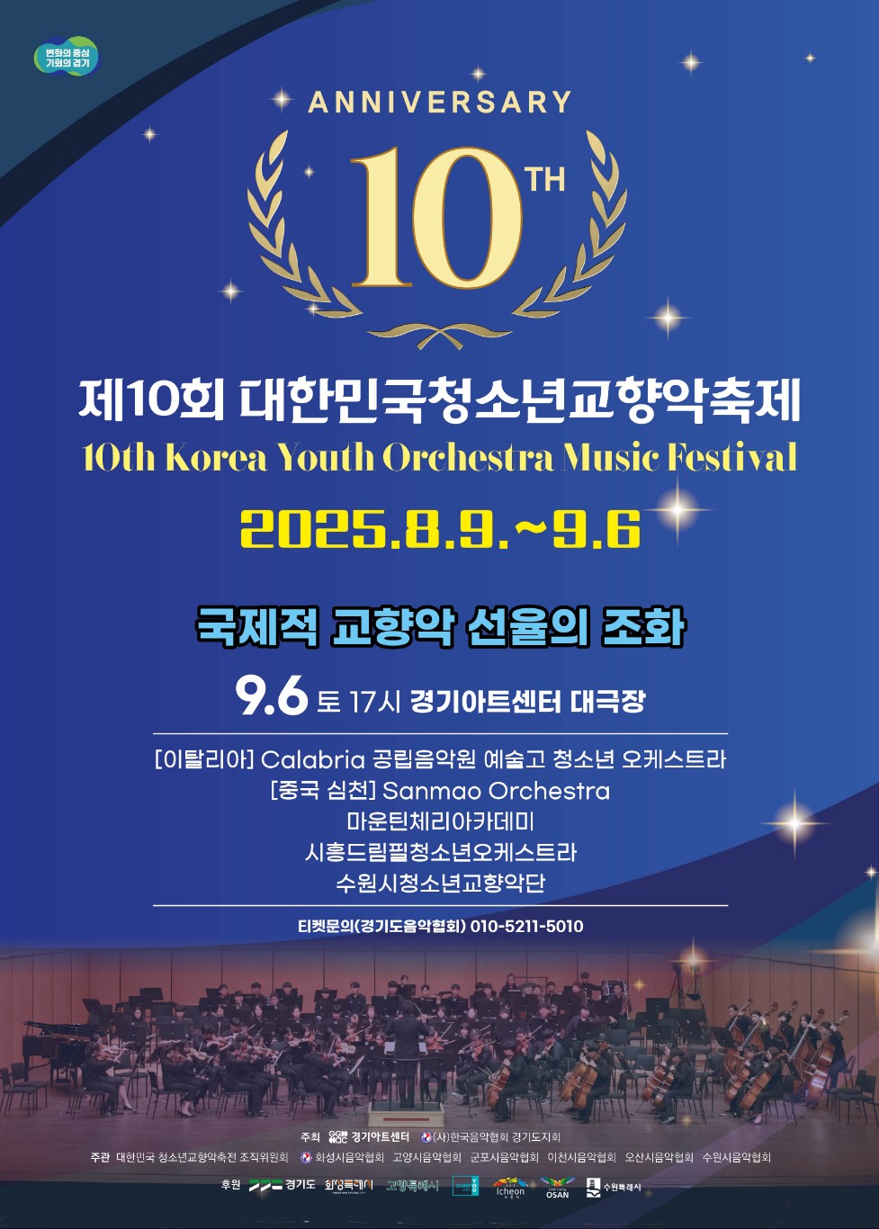‘제10회 대한민국청소년교향악축제’가 9월 6일 오후 5시 경기도 수원 경기아트센터 대극장에서 피날레 공연을 끝으로 막을 내렸다. 이번 축제는 경기아트센터와 한국음악협회 경기도지회가…