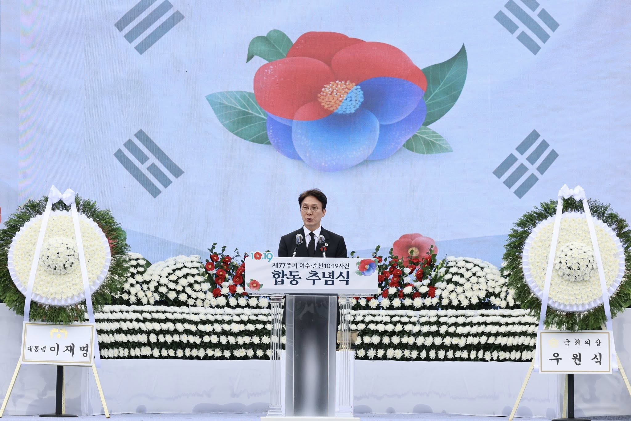 전남 구례에서 여수·순천 10·19사건 77주기 합동추념식이 열렸다. 정부를 대표해 참석한 국무총리는 “이념의 굴레와 갈등 속에서 여순은 여전히 현재진행형”이라며 “비극이 반복되지…