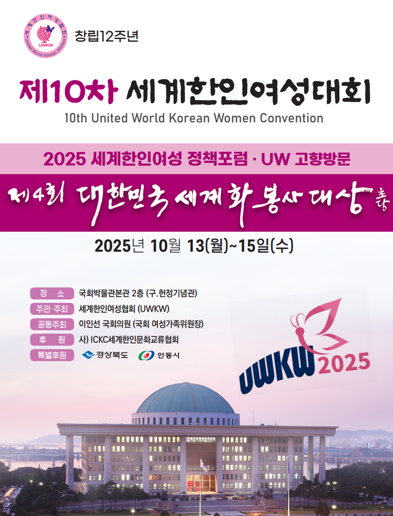 “모국 귀환 준비된 한민족 여성 공동체 만들겠다” 지난 10/13 국회박물관강당에서 열린 제10차세계한인여성대회 열린 제9차 ‘세계한인여성대회’는 전 세계 재외한인 여성들이 한자리에…