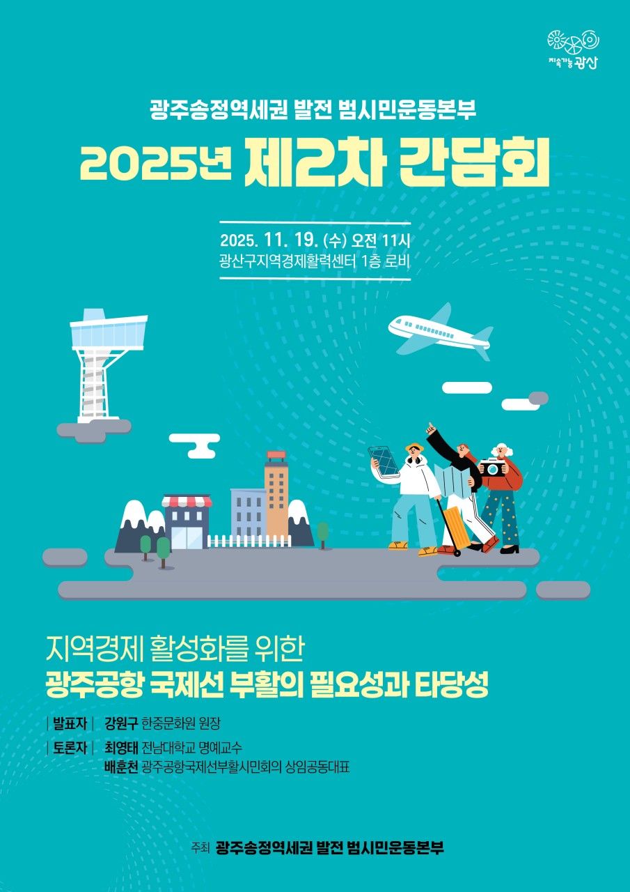 광주송정역세권 발전 범시민운동본부가 19일 오전 광산구지역경제활력센터 1층 로비에서 2025년 제2차 간담회를 개최했다. 이번 간담회는 지역경제 활성화 전략을 모색하고 광주공항 국제선…