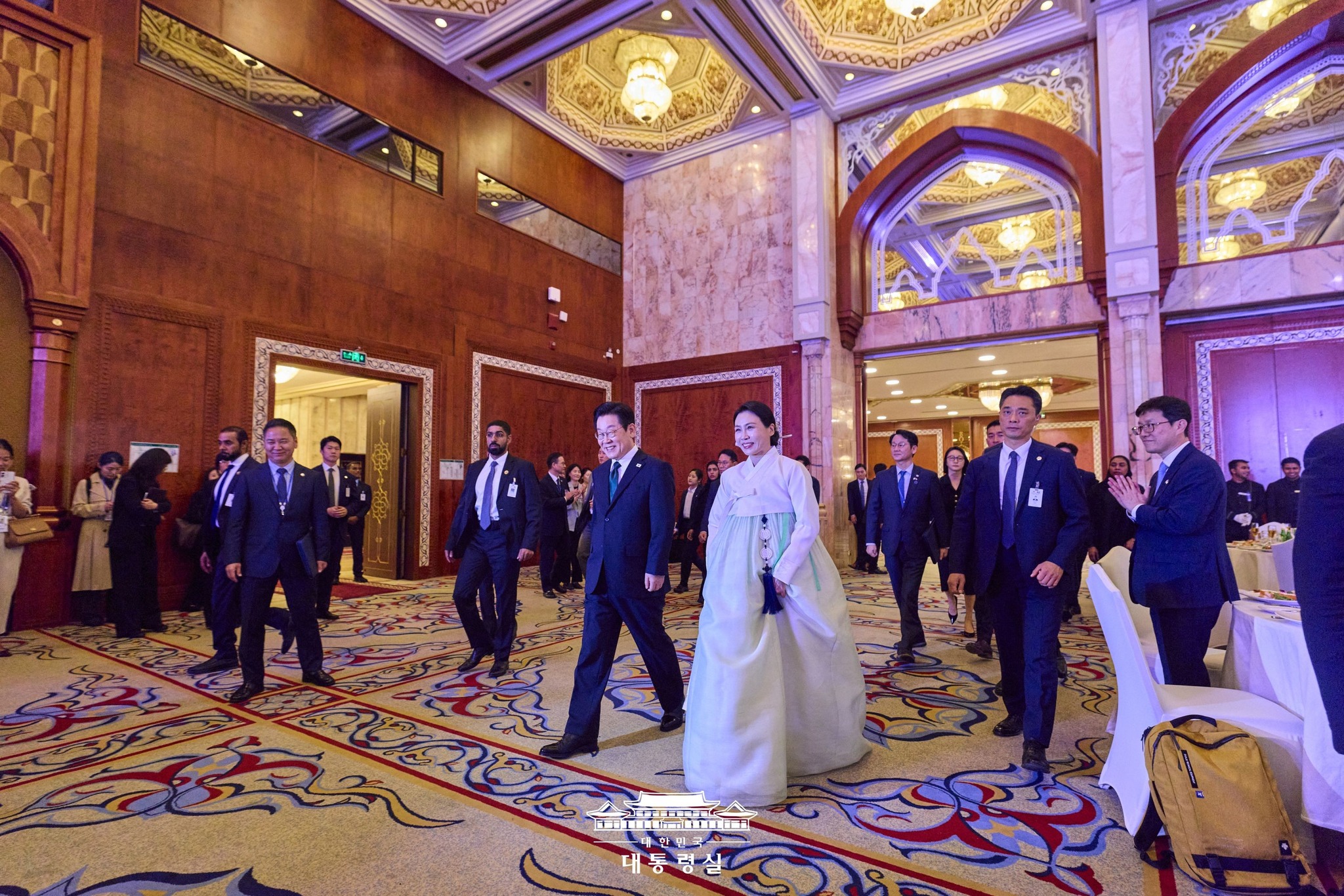 아랍에미리트연합(UAE)을 국빈 방문 중인 이재명 대통령이 11월 17일(현지시간) 아부다비의 한 호텔에서 열린 교민 만찬간담회에서 현지 교민사회와 직접 소통하며 대한민국과 UAE…