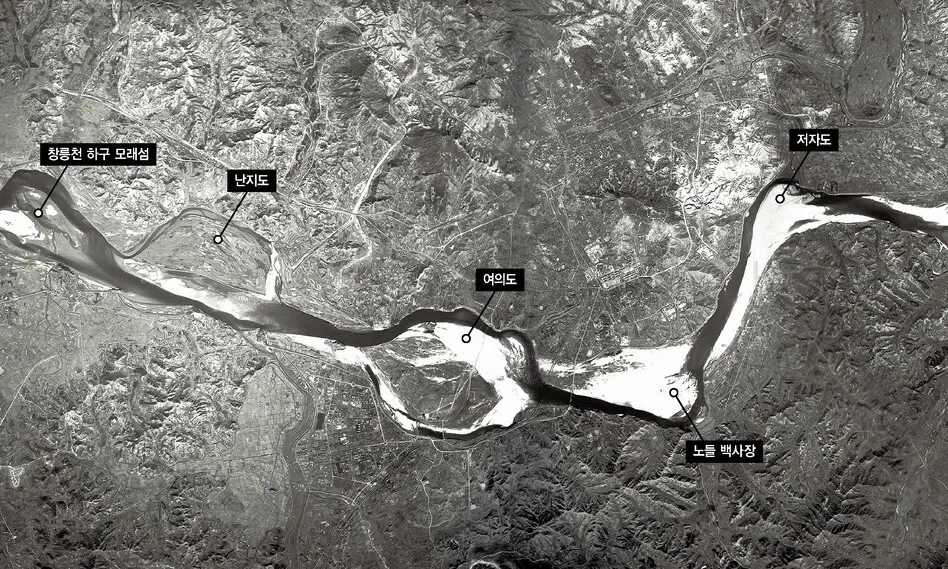 1960~80년대 개발 이전 한강의 자연 지형을 확인할 수 있는 1950년 항공사진이 처음으로 공개됐다. 이 사진은 1950년 11월2일 미 극동 5공군…