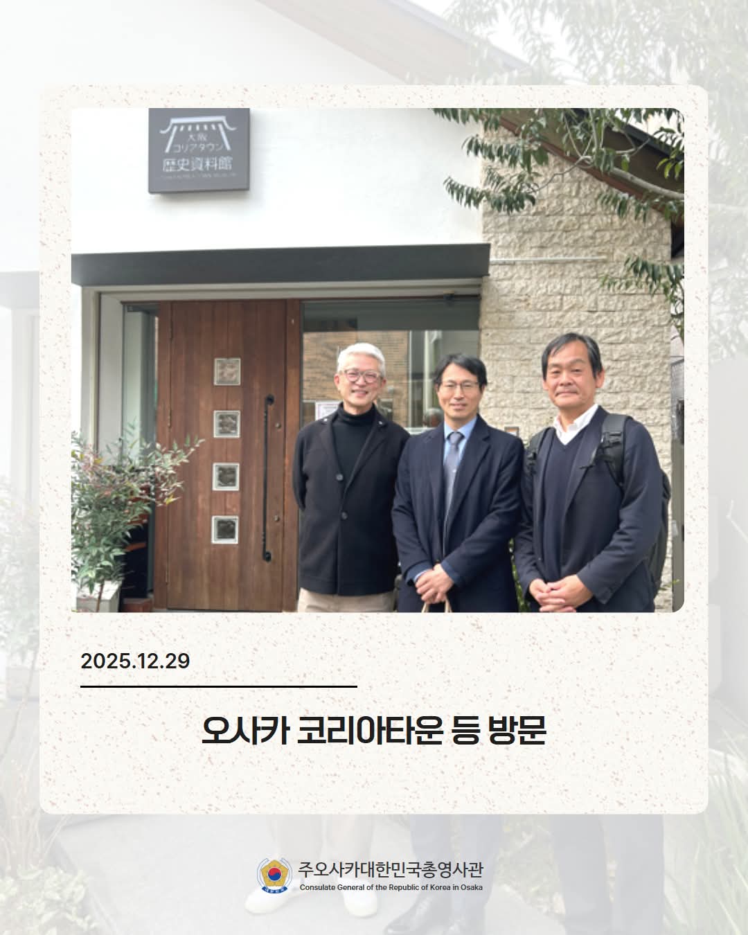12월 29일 이영채 총영사는 연말연시를 맞아 재외동포와 일본인 방문객으로 붐비는 오사카 코리아타운을 시찰했다. 이번 현장 방문은 지역 사회의 분위기와 교류…