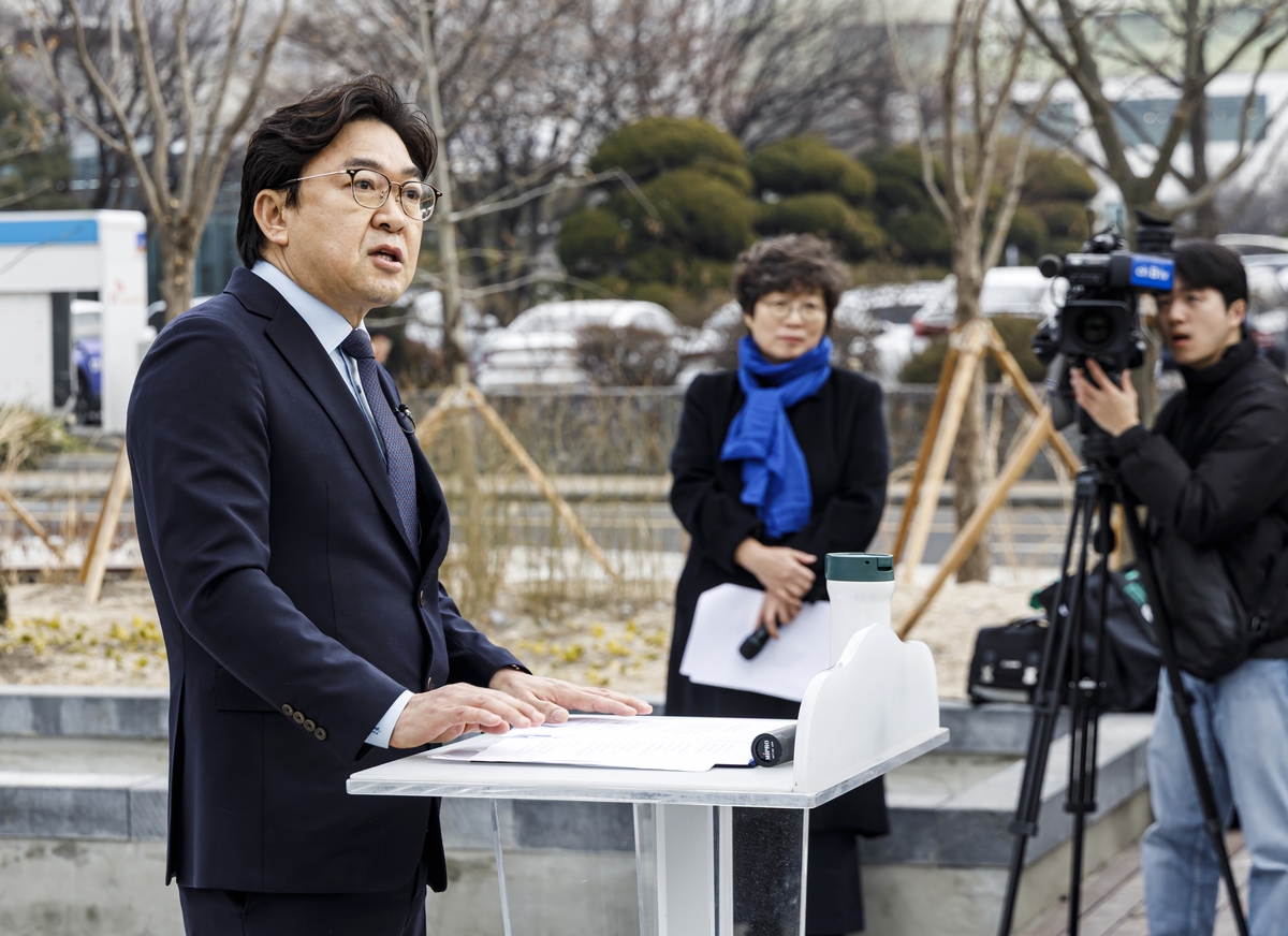 권혁우 더불어민주당 경기기본사회위원회 부위원장이 5일 경기 수원시의회 앞에서 기자회견을 열고 올해 수원시장 선거 출마를 선언했다. 권혁우 부위원장은 이날 “수원시 재정자립도가…